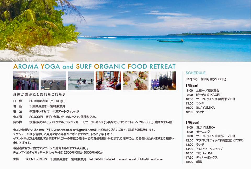 Aroma Yoga & Surf OrganicFood Retreat が開催されます。