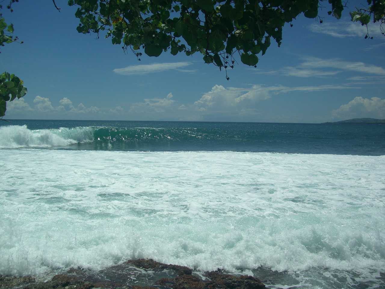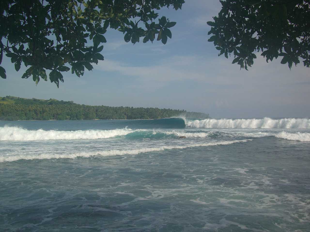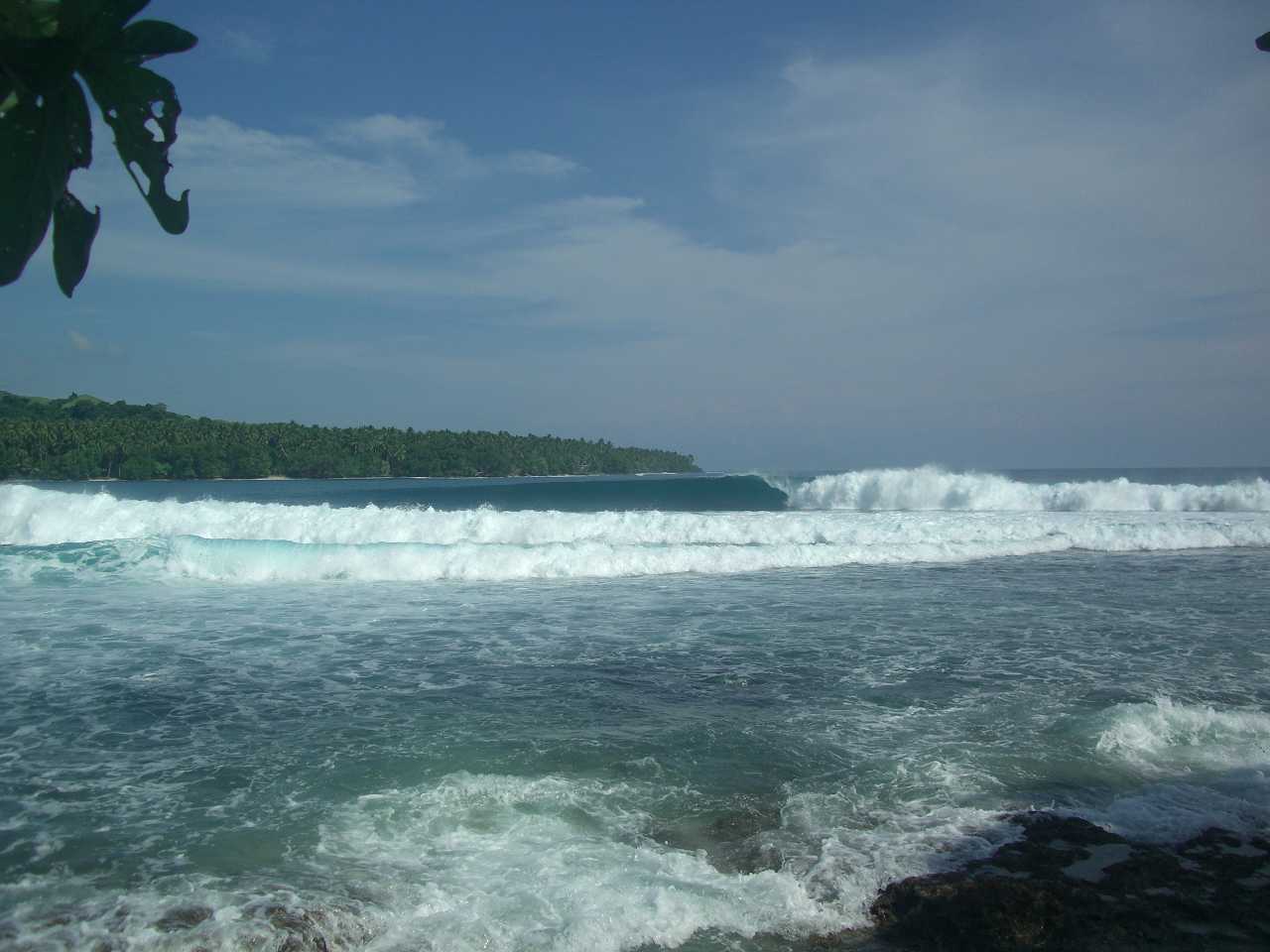 波はキャンプのあるメインのトゥピラポイントでダブルからオーバーヘッドに